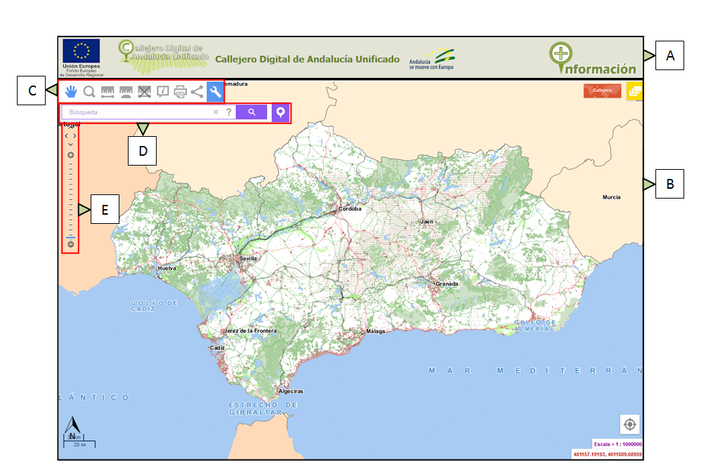 Una vez que se accede a la aplicación se observan las distintas partes del visor que describen a continuación: